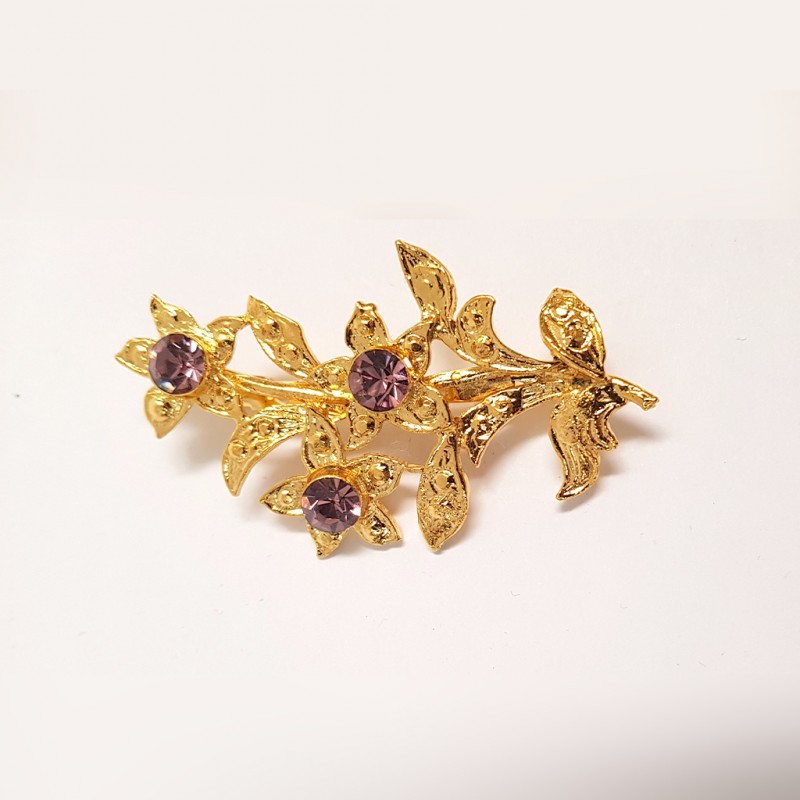 Broche en Métal argente incrusté de 3 cristaux mauves SWAROVSKIFabrication Artisanale Italienne.