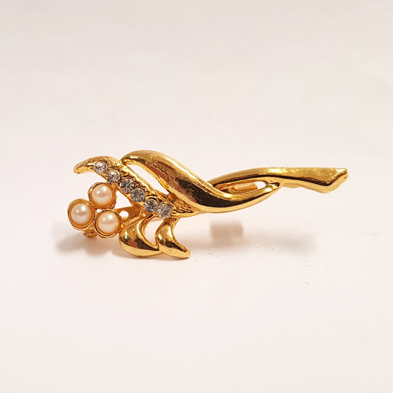 Broche en Métal argente incrusté de 6 cristaux 3 perles SWAROVSKIFabrication Artisanale Italienne.