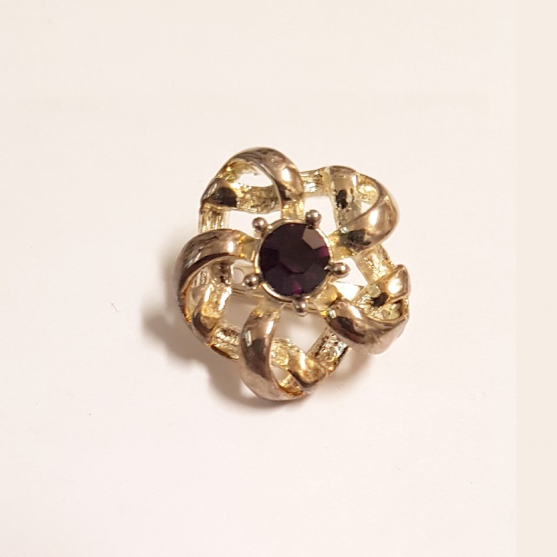 Broche en Métal argente incrusté de 1 cristal SWAROVSKI (pourpre)Fabrication Artisanale Italienne.