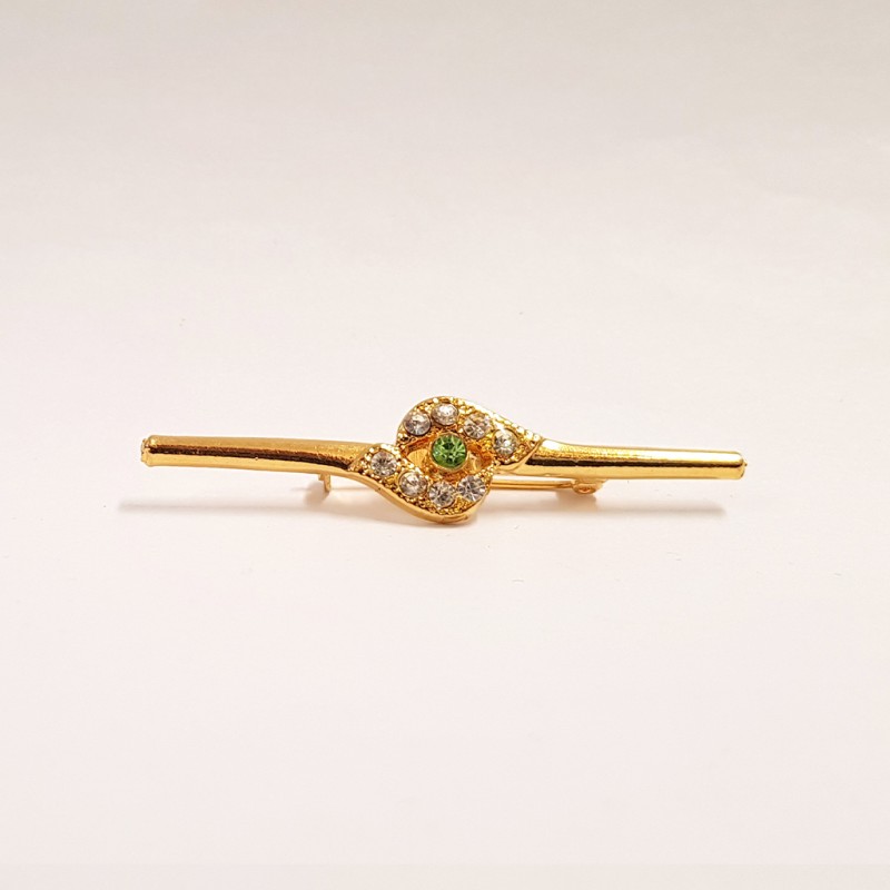 Broche en Métal doré incrusté de 9 cristaux SWAROVSKI (1 vert clair et 8 blanc)Fabrication Artisanale Italienne.