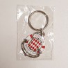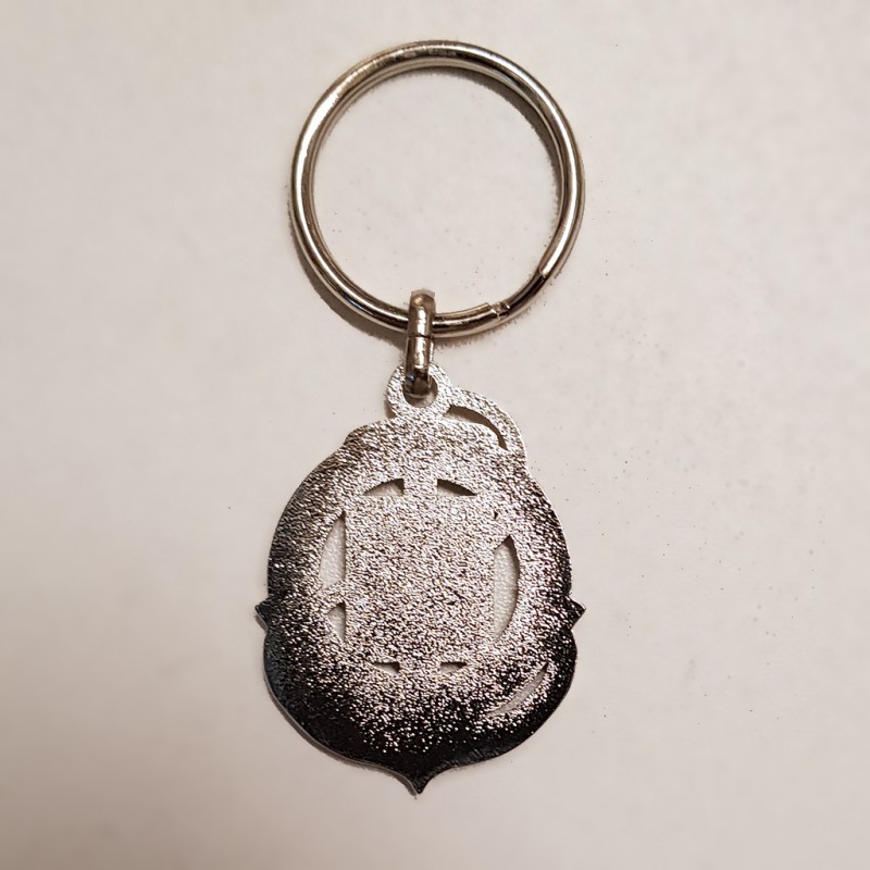 Porte-clé en alliage ZAMACFinition nickel brillantDimensions 35 X 45 mm (bélière non incluse)Epaisseur : 2 mmEmail à froid